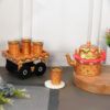 Handmade Kettle with Four Glasses and Wooden Kart “Are you hosting a high tea party? This unique and exceptional teapot is not to be missed! There are scones on the table. Not any longer! Every visitor to the room is envious of this exquisite hand-painted colorful teapot from Ship Lam Creations.